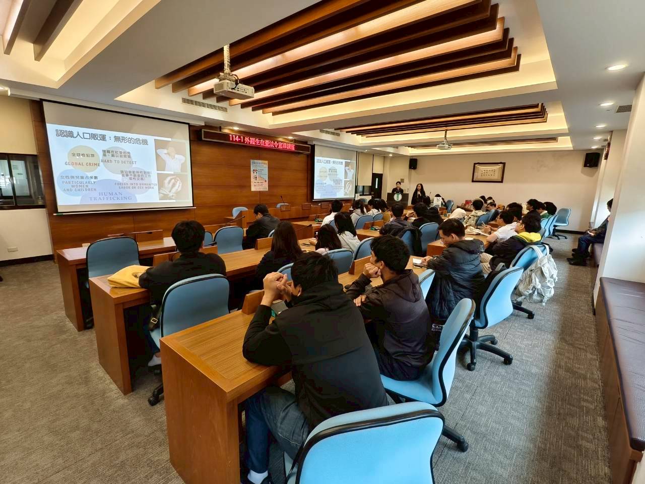 員林分局的員警在講座中,針對外籍生最常遇到的三大風險進行說明。在「反詐騙」方面,警方分享了近期常見的網路交友詐騙、假投資及假網拍等案例,並再三強調「不點陌生連結、不給個資、金錢往來要停看聽」的三大原則,提醒學生們保護好個人資料與財產。