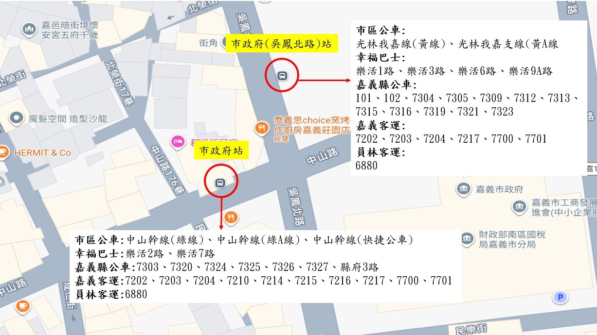 除了自行開車,市府也鼓勵民眾多搭乘大眾運輸。市府周邊500公尺內設有12處公車站點,涵蓋3條市區公車、37條公路客運及6條幸福巴士路線,每日總計提供超過580班次服務。同時,附近也設有15處YouBike站點,提供民眾便捷的轉乘選擇。