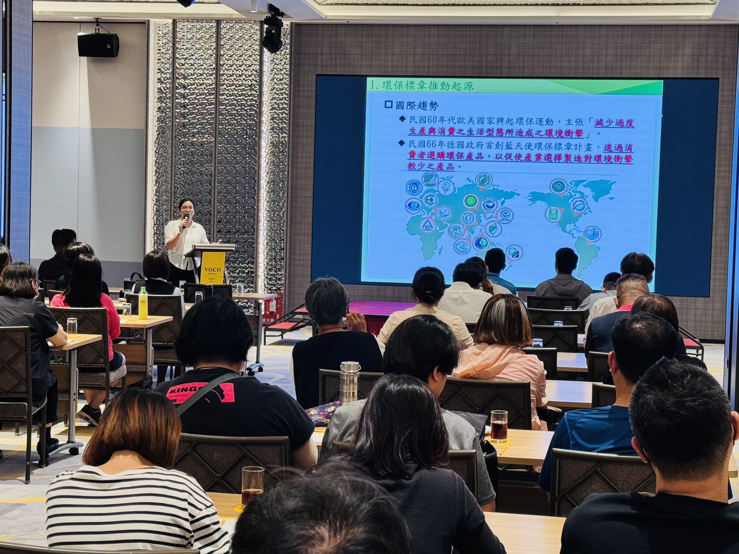 為了達成2050淨零碳排的城市願景,嘉義市政府環保局今(14)日於嘉義福容voco酒店舉辦「服務類環保標章說明會」,吸引了旅宿、餐飲、租賃等28家在地業者熱情參與,共同探討如何透過提供「綠色服務」,在日常營運中實踐永續價值,一同邁向淨零綠生活。