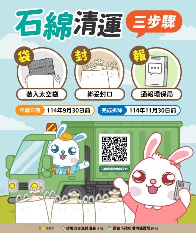 環保局指出,石綿纖維逸散對人體健康具有潛在危害,處理時不可不慎。為加速清運並確保安全,民眾在完成拆除後,應遵循「打包、暫置、通報」三步驟。首先,必須將拆下的石綿廢棄物妥善裝入堅固的「太空袋」中,並將袋口確實封緊,防止纖維飛散。接著,將打包好的太空袋移至指定地點暫置,最後主動致電環保局,告知太空袋的數量與放置地點,環保局將會依照通報順序安排清運。若對清運有任何疑問,可洽詢石綿諮詢專線(05)2251775轉312,由吳小姐協助說明。
