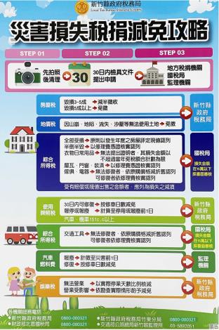 鳳凰颱風陸上警報已於今(11日)發布,新竹縣政府稅務局提醒所有縣民,若因颱風造成財產損失,千萬別忘了自身權益,只要簡單兩步驟「先拍照、後申請」,就能獲得稅務減免。受災戶需在災害發生後30天內提出申請,以減輕災後經濟負擔。