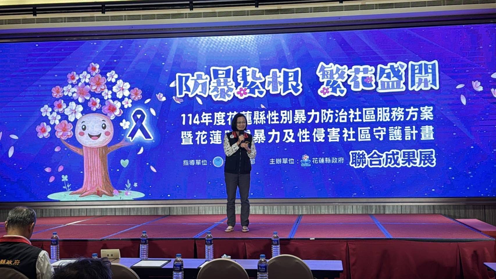 花蓮縣政府今(28)日在美侖大飯店盛大舉辦「114年度性別暴力防治」聯合成果展,以「防暴紮根・繁花盛開」為主題,展現過去一年與社區夥伴在性別暴力防治工作上的豐碩成果。縣長徐榛蔚親自出席,強調將持續攜手民間力量,讓「暴力零容忍」的觀念從倡議走向文化,深植於每個社區與家庭,共同將花蓮打造成為一個共好共榮的幸福城市。