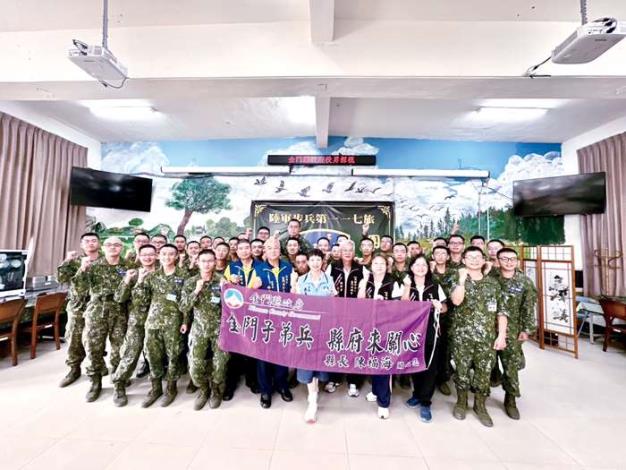 正在高雄鳳山營區接受新兵訓練的金門子弟們,近日收到一份驚喜!金門縣政府南區服務處攜手高雄市金門同鄉會與高雄市浯江金門同鄉會,共同前往陸軍官校鳳山營區,慰問陸軍117旅0240梯次、共35名金門籍役男,並送上漢堡、薯條等速食點心,讓暫時離鄉的年輕學子感受到滿滿的家鄉溫情。