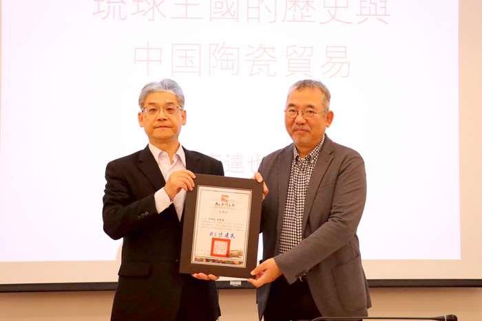 森達也教授以「琉球王國歷史文化中的福建影響」及「琉球王國的歷史與中國陶瓷貿易」為題,展開兩場精彩講座。他指出,琉球王國在過去的東亞海上貿易中佔有重要地位,並透過與「福建」的緊密互動及吸收「中國物質文化」,逐步建立起屬於自己的國家身分與文化特色。森達也教授以其在中國陶瓷考古與陶瓷史的深厚研究為基礎,深入淺出地分享,讓學生們清楚了解沖繩與中國文化之間的深厚關聯。