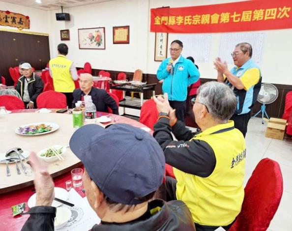 會中也提及一段地方趣聞,原來除了副縣長李文良,宗親會中還有一位同名同姓、現年77歲的李文良宗長。這位資深宗長曾任金湖李氏宗親聯誼會理事長,更是「山外李家幫」的重要推手。他回憶,早年因戰亂,許多李氏族人遷居山外謀生,為了團結互助,他積極奔走聯繫,將分散各地的宗親凝聚起來,如今「山外李家幫」已是超過千人的大家族,成為金門李氏宗族發展史中一段佳話。