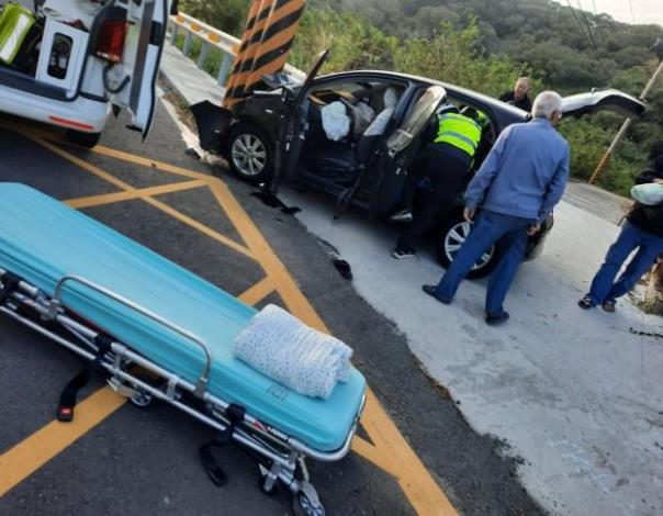 苗栗縣消防局表示,昨日下午接獲通報後,通霄分隊救護人車第一時間便趕抵現場。消防人員發現,現場為一輛汽車自撞電線桿,車體已有部分變形,且車內有四名傷者待援。由於傷者人數超過一輛救護車可負荷的範圍,指揮官立即請求勤務中心加派兩部救護車及破壞器材車前來支援。待苑裡分隊等支援單位到場後,消防人員利用專業破壞器材協助受困民眾脫困,並在進行初步急救處置後,由三輛救護車分批將四名傷者送往醫院治療。