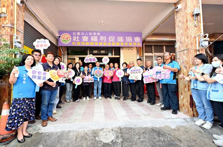 苗栗縣老年人口比例已達20%,為積極推動在地安老,今(31)日迎來全縣第230個社區照顧關懷據點的揭牌啟用。此據點由苗栗縣社會福利促進協會於苗栗市福麗里開辦,縣長鍾東錦親自到場祝賀,除致贈15萬元開辦費外,更現場高歌一曲與長輩們同樂,場面溫馨熱絡。