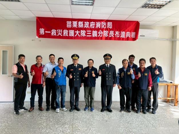 苗栗縣消防局第一大隊三義消防隊於11月10日上午舉行新任分隊長佈達儀式,由第一大隊大隊長鄭勝峰親自主持,正式宣布由楊超麟接任分隊長一職。楊超麟的到任,將為三義地區的防災救護工作注入新能量,強化地方安全防護網。
