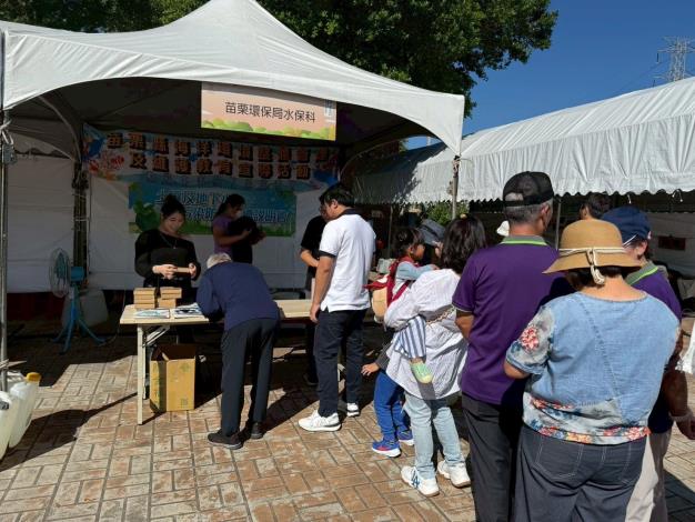 除了豐富的社區活動,苗栗縣環保局的參與也成為本次生活節的一大亮點。環保局特別在現場設置宣導攤位,以「土壤與地下水保護」及「海洋環境維護」為主題,設計了有趣的字卡問答遊戲。許多家長帶著孩子在攤位前互動學習,讓民眾在輕鬆遊逛的同時,也能吸收環境永續的相關知識,達到寓教於樂的效果。