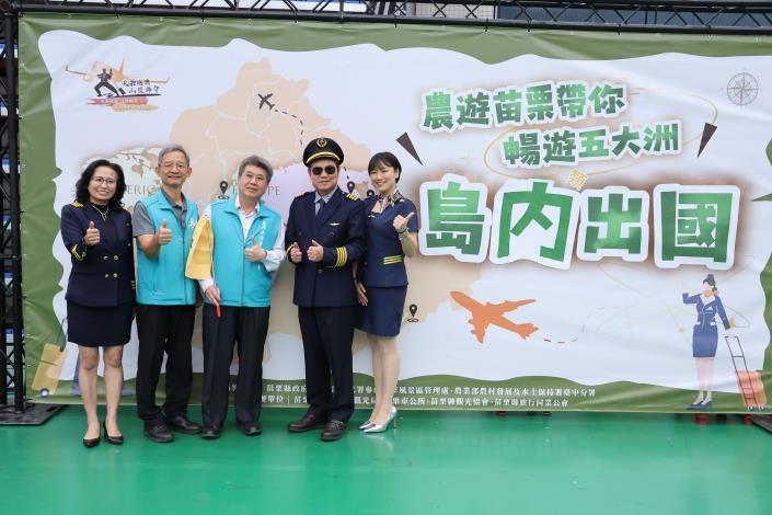 苗栗縣府今(22日)舉辦大型觀光推廣媒合會,縣長鍾東錦、副縣長邱俐俐化身機長吸睛,現場湧入近900位旅遊業者。活動力推永續旅遊,並為8家「慢魚永續店家」授證,全力搶攻國旅及國際觀光商機。