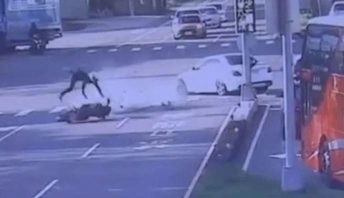 苗栗縣竹南鎮今(5)日上午發生一起駭人車禍!一名年僅22歲的石姓男子,騎乘紅牌重型機車行經台13線、鄰近香山交流道的路口時,與一輛準備左轉的賓士轎車發生猛烈碰撞。巨大的撞擊力道讓騎士連人帶車噴飛超過10公尺遠,重摔在地後傷重不起,目前仍在醫院搶救中。