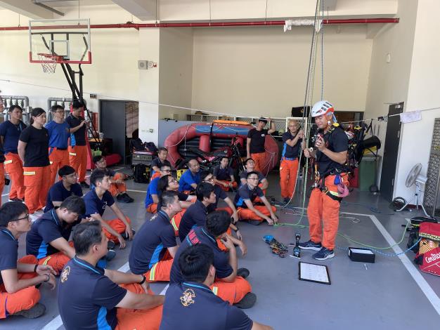 體能之外,專業的救助技能更是救援成功的關鍵。技能測驗於泰安分隊舉行,著重於繩索救援相關技術。項目包括各式基本繩結、繩索登降、滑輪拖拉系統架設,以及複雜的固定點與緊繃繩系統架設。透過實際操作演練,驗證每位消防員在執行繩索救援任務時的熟練度與安全性,確保技術到位、分秒不差。