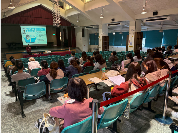 講座中,消防隊員首先強調了火災發生時的應變要領。宣導內容指出,若在火場中不幸身上著火,應立即採取「停、躺、滾」三要訣,迅速撲滅火苗,將傷害降到最低。而在逃生過程中,由於濃煙會向上竄升,必須保持低姿勢爬行,並遵循避難指示燈的方向,盡速離開危險區域。透過實際案例分析,讓老師們對火場的危險性有更深刻的認識。