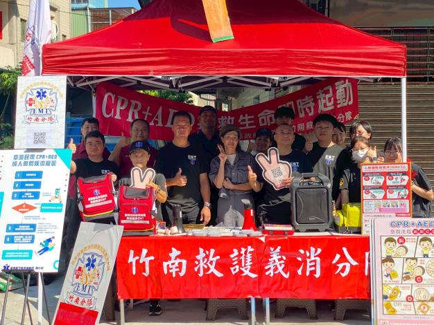 活動現場,消防與義消人員透過實際操作示範,耐心指導民眾心肺復甦術(CPR)及自動體外心臟去顫器(AED)的使用方法。竹南消防分隊表示,當有人突然倒下時,旁觀者的第一時間急救是「生命之鍊」中至關重要的一環。若能在救護車抵達前的黃金時間內正確施救,將大幅提升患者的存活率。此次宣導目的,就是希望提升民眾自主緊急救護的能力,讓每個人都有機會成為救命英雄。