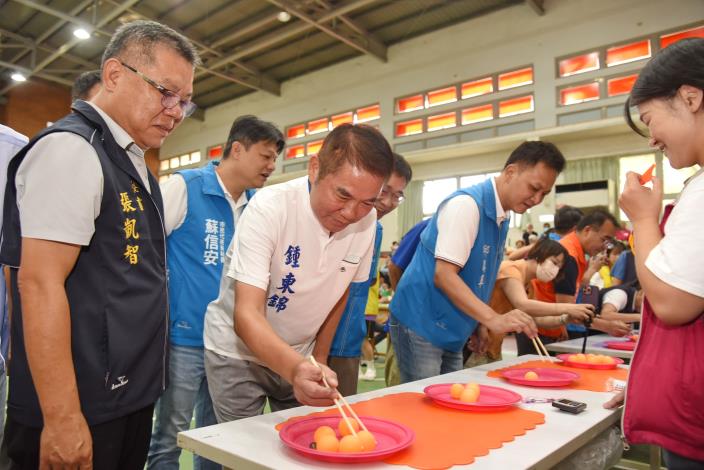 苗栗縣長鍾東錦肯定主辦單位的用心,看到鄉親們踴躍參與,他表示一場成功的活動不僅需要精心策劃,更需要民眾的熱烈迴響。他親自下場體驗關卡,鼓勵長輩多參與類似活動,讓身心更靈活健康。衛生局長楊文志也指出,活動過程能觀察長輩是否有身體衰弱的早期跡象。除了競賽,現場還有警政、戶政、長照等單位進行政策宣導,立委邱鎮軍、副議長張淑芬、頭份市長羅雪珠等貴賓也到場支持。時序入秋,鍾東錦也特別提醒民眾,流感及新冠疫苗將於10月1日起開打,呼籲鄉親依規劃踴躍接種,保護自己與家人的健康。