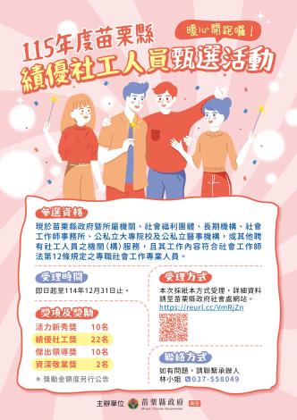 • 苗栗社工站出來!2026績優社工表揚開跑,44個榮譽名額等你拿