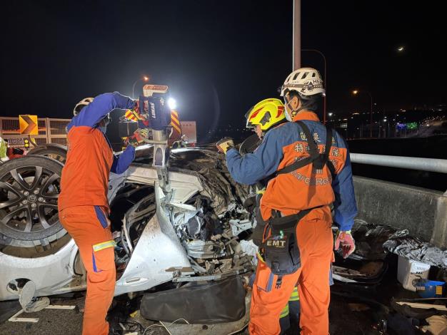 • 國道驚魂!銅鑼交流道轎車180度翻覆 駕駛受困 特搜隊破壞車體緊急搶救