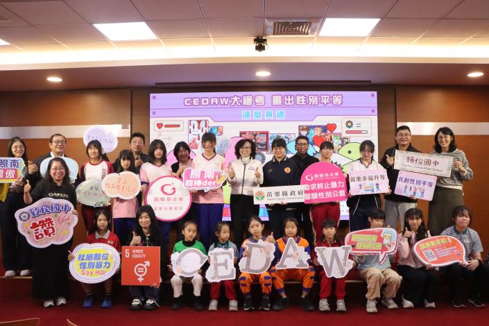 苗栗縣政府今(23日)舉行「CEDAW大『繪』考 × 畫出性別平等」頒獎典禮,表揚在性平繪畫比賽中表現傑出的26位國中小學生。副縣長邱俐俐親自頒獎,並感謝勵馨基金會苗栗分事務所的協助,她強調,性別平等不應只是口號,而是必須落實在日常生活與網路世界的具體行動,特別是在數位時代,更要正視網路霸凌、私密影像外流等新型態的數位性別暴力。