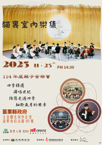 更多活動詳情,可至苗栗縣政府文化觀光局網站或臉書搜尋「貓裏藝文」粉絲專頁查詢。