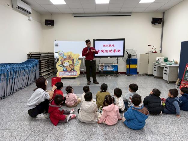 苗栗消防隊日前為苗栗地方法院附設幼兒園舉辦防火宣導,小朋友們親身體驗「停躺滾」並認識消防裝備。消防局也藉此呼籲民眾,謹記「小火快逃、濃煙關門」口訣並安裝住警器,確保居家安全。