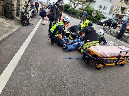 另一名男性騎士則倒在路邊,雖然意識清楚,但傷勢也不輕。經救護人員初步評估,其右小腿與左肩疑似骨折。救護人員同樣為他進行了頸圈、長背板及患處固定等標準急救處置後,將兩名傷者分別送往責任醫院進行後續的詳細檢查與治療。