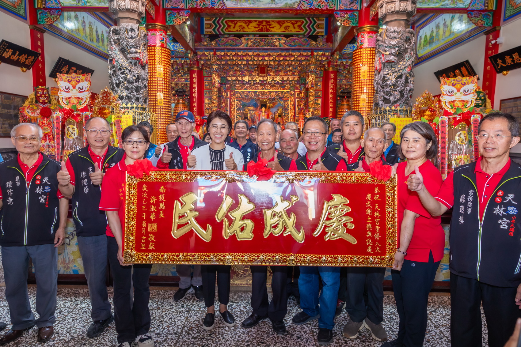 南投縣喜事連連!鹿谷鄉天林宮與竹山鎮慈惠堂將分別舉行慶成大典,縣長許淑華14日親赴兩地贈匾祝賀,祈求神明庇佑地方,並肯定宮廟對文化傳承與社會公益的貢獻。