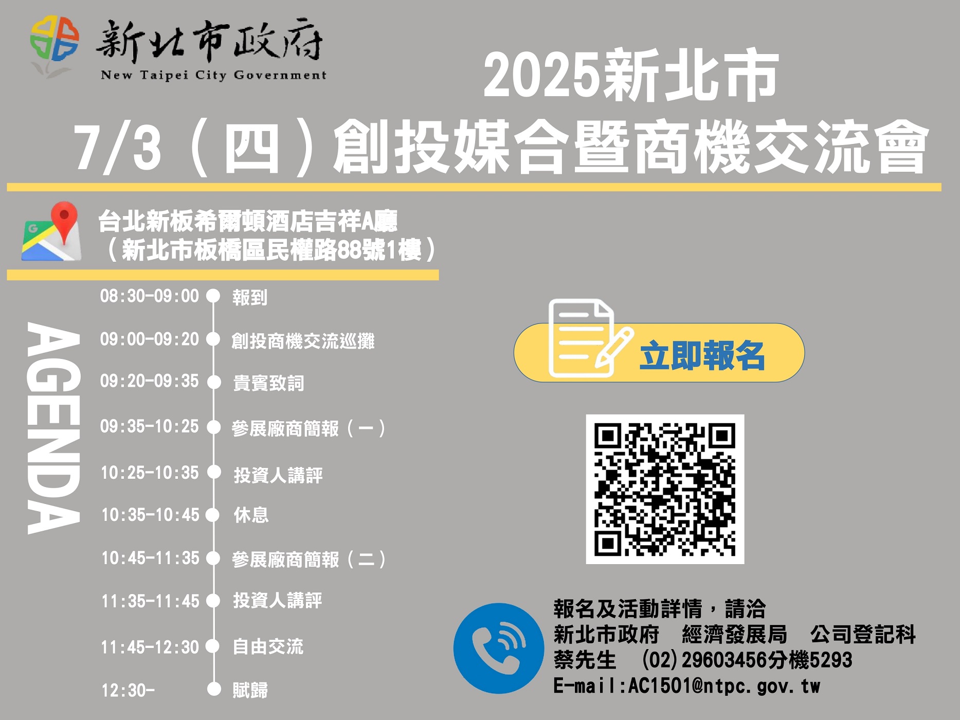 新北市一年一度的「2025新北市創投媒合暨商機交流會」將於7月3日在台北新板希爾頓酒店隆重登場。此次活動再次舉辦以來,已有顯著成績,包括促成70份合作意向書,協助新北廠商募資近6,000萬元,並幫助超過10家企業積極進軍創櫃板市場。