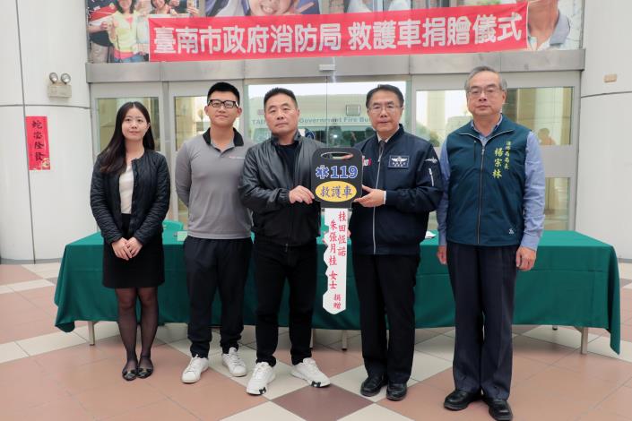 台南在地知名企業桂田集團,於今(29)日再度展現企業回饋社會的精神,由董事長朱仁宗以其母親朱張月桂女士之名,捐贈一輛價值不菲的高規格救護車給台南市政府消防局。在市長黃偉哲的見證下,這輛將投入鹽水地區服務的新車正式交付,為地方的緊急救護網絡注入一股強大力量。