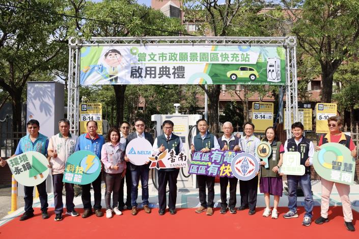 為解決電動車主的「里程焦慮」,台南市政府加速推動綠能基礎建設,市長黃偉哲今(16)日親赴麻豆區的曾文市政願景園區,主持全新電動車充電站的啟用典禮。此站點包含2席快充及1席慢充格位,不僅象徵台南偏鄉地區的綠能交通服務再升級,也宣告市府持續擴大電動車充電站的決心,目標讓充電服務在全市均衡發展。