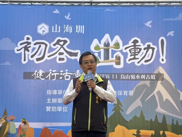 為振興台南楠西地區觀光,市府規劃的「初冬,出動!」烏山嶺水利古道健行活動,於今(20日)上午在曾文水庫溪畔遊樂區盛大揭幕。現場由農業局專門委員吳俊傑、楠西區長何榮長共同鳴炮,帶領超過百位民眾熱情起走,宣告為期三天的健行活動正式啟動,期望吸引更多人潮,活絡因地震影響的在地產業。