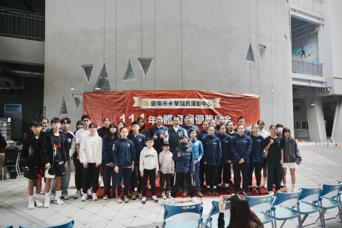 臺南市永華國民運動中心今(20)日頒發年度體育獎助金,共63位績優選手獲獎。營運商喬鑫公司每年提撥20萬元,體育局長陳良乾也到場肯定,展現公私協力支持基層體育的豐碩成果。