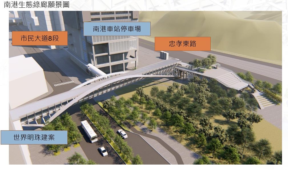 臺北市政府工務局新建工程處規劃設計科科長陳百慶表示,南港區人行立體連通系統全長近3.56公里,以南港車站為核心,將周邊商場、捷運站及藝文場館緊密連結。此次啟用的立體連通平臺扮演了重要的節點角色,不僅讓民眾能輕鬆往返臺北流行音樂中心與車站商圈,平臺下方的半戶外廣場未來更可作為市集或活動空間,有效活化都市空間,帶動地方繁榮。