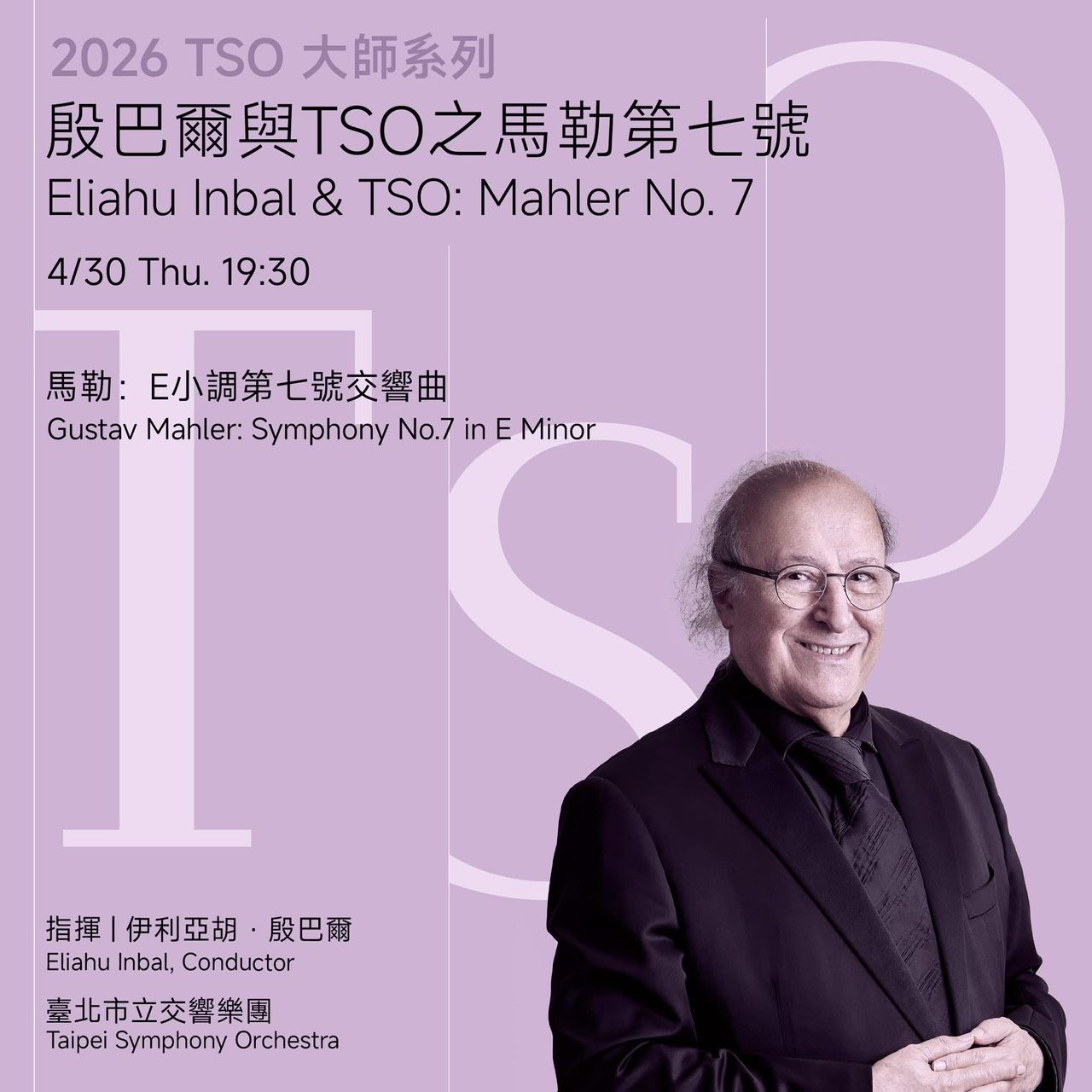 國際知名指揮巨擘、馬勒作品權威詮釋者伊利亞胡.殷巴爾(Eliahu Inbal),將於2026年4月30日晚間七點半再度蒞臨台北,於國家音樂廳執棒臺北市立交響樂團(TSO),為台灣樂迷帶來馬勒的E小調第七號交響曲。這場備受矚目的音樂會為「2026 TSO 大師系列」的重點節目,門票現已開賣,邀請觀眾一同見證這場音樂盛事。
