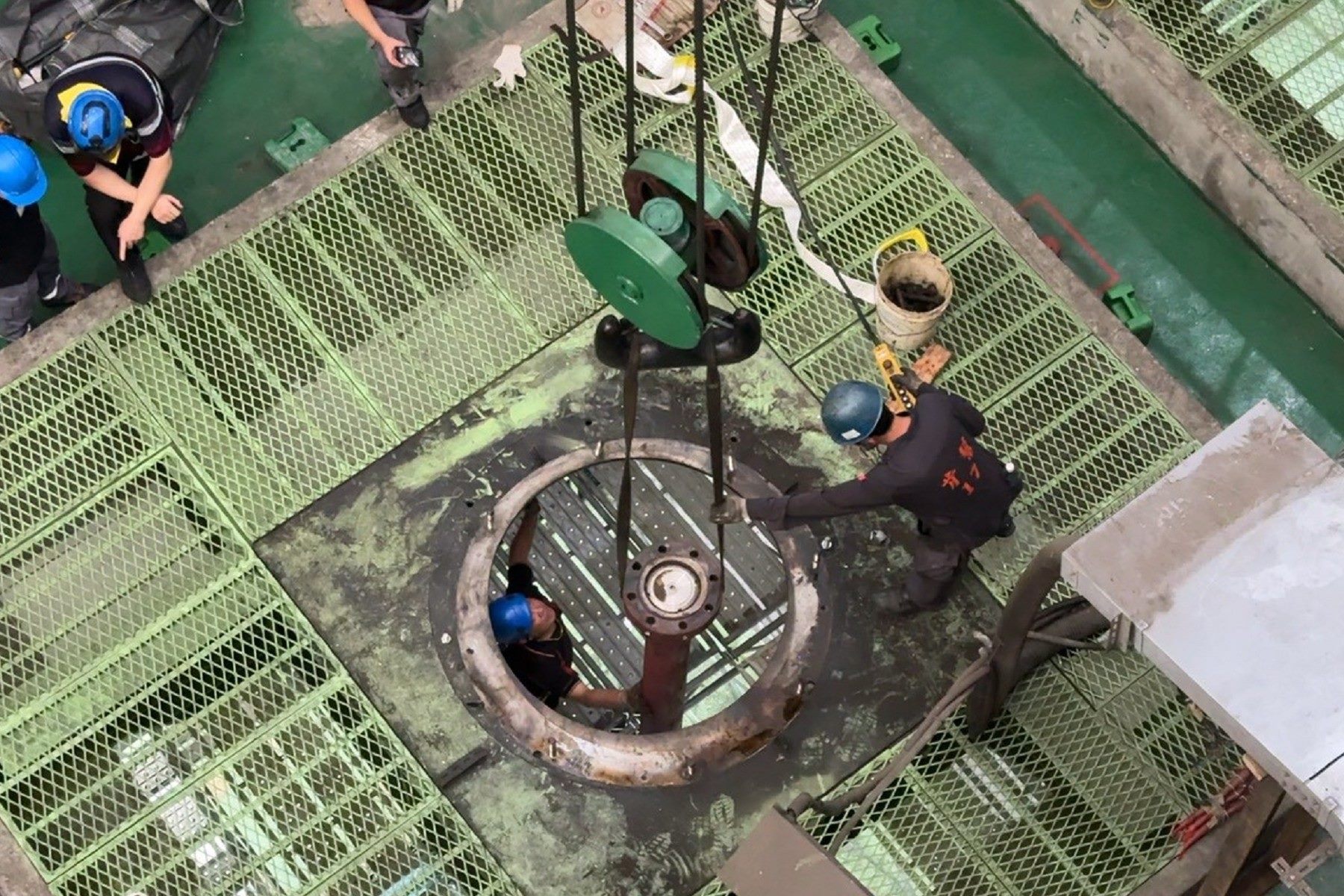 本次維保作業的一大亮點,是針對9台900馬力(Hp)的大型污水抽水機進行年度保養。張賢德指出,光是單一一台大型抽水機的保養,就需耗時長達45天,並動員超過50名專業技術人員。過程中,技師們會將抽水機徹底拆卸,進行軸封、軸承的檢視更換,並執行動平衡校正、磨損零件汰換及多項精密測試。這套嚴謹的程序,目的在於及早發現潛在問題並加以修復,確保這些防汛猛獸在關鍵時刻能發揮最大效能,持續穩定地守護臺北市。