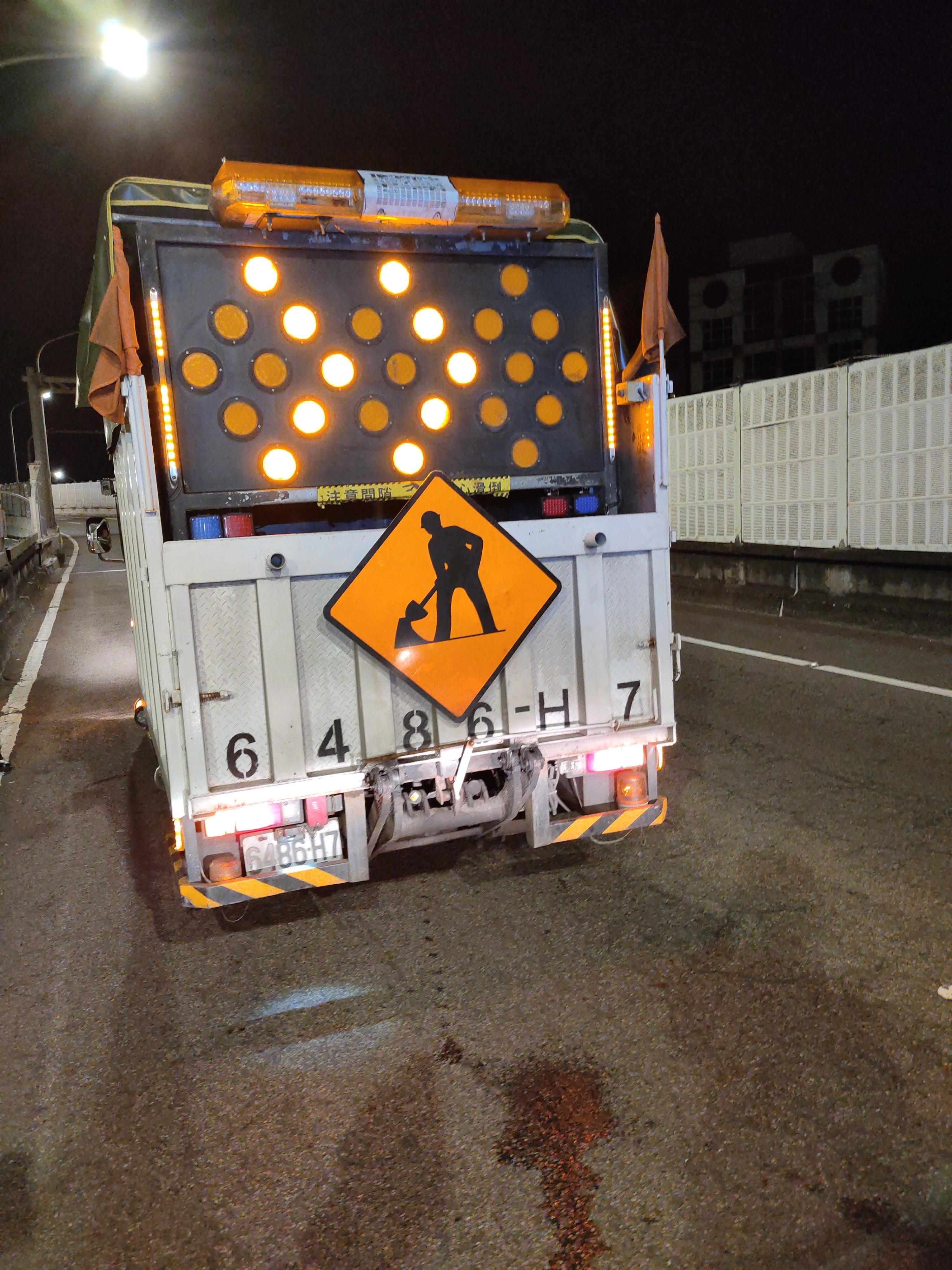 為了保障夜間施工人員與用路民眾的雙重安全,此次清疏作業的維安標準將比照高速公路局。除了在作業路段擺設交通錐、閃爆燈及LED顯示板等基本警示設施外,更將出動「緩撞車」在後方戒備。這種特殊車輛能有效吸收後方車輛的撞擊動能,大幅降低意外發生時對人員的傷害,為施工區域打造一個更安全的環境。