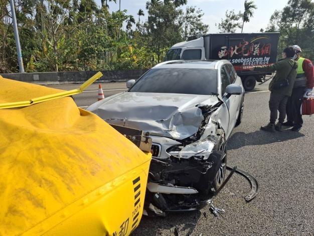 • 國道一號北上驚魂!轎車猛撞緩撞車「車頭全毀」 駕駛幸運僅輕傷