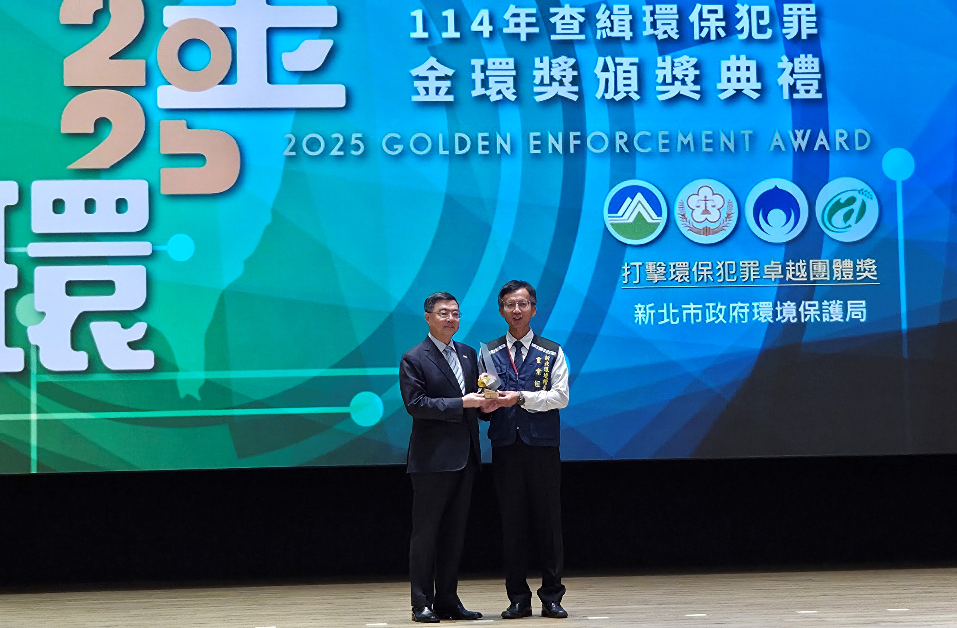新北市環保局再傳捷報!在環境部與法務部共同主辦的2025年度「金環獎」評選中,新北市再度勇奪「打擊環保犯罪卓越團體獎」,並有3名稽查同仁榮獲個人獎,成為全國唯一連續4年獲此殊榮的地方環保機關,展現其在打擊環保犯罪上的卓越成效與堅定決心。