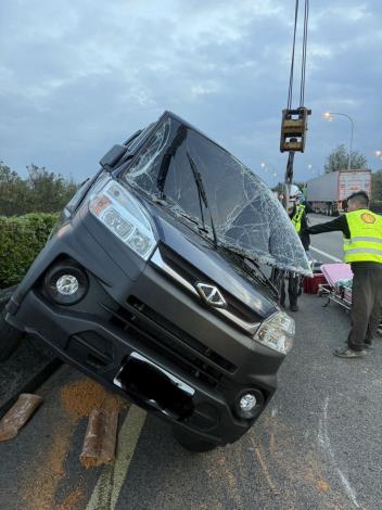 經救護人員初步評估,該名駕駛意識清楚,自述感到頭暈,但身上沒有明顯外傷。為求謹慎,仍由救護車送往醫院做進一步的詳細檢查。針對這起國道車禍,消防局也特別呼籲所有用路人,行駛於高速公路時務必注意三點:第一,保持充足精神,避免疲勞駕駛;第二,與前車保持安全距離,以預留足夠的反應時間;第三,全程繫妥安全帶。若不幸發生追撞等事故,應保持冷靜,穩握方向盤將車輛滑行至路肩安全處後,再撥打110及119求援,共同維護行車安全。