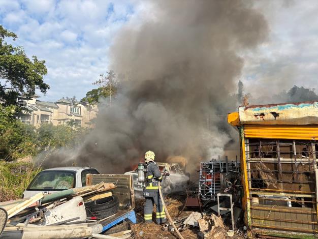 廢車場火警濃煙竄天 消防急馳援30分鐘滅火