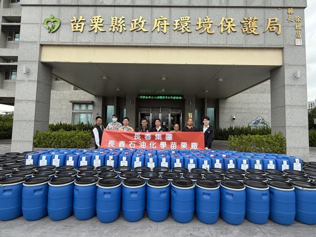為提升苗栗縣的廚餘回收效率,並強化非洲豬瘟的防疫陣線,在地深耕企業「長春石油化學股份有限公司」近日發揮企業社會責任,慷慨捐贈100個廚餘回收桶及155桶消毒液。這批物資將由苗栗縣政府環保局統一分發至全縣各鄉鎮市的清潔隊,盼能藉此提升第一線的作業便利性,並落實能資源循環的環保策略。