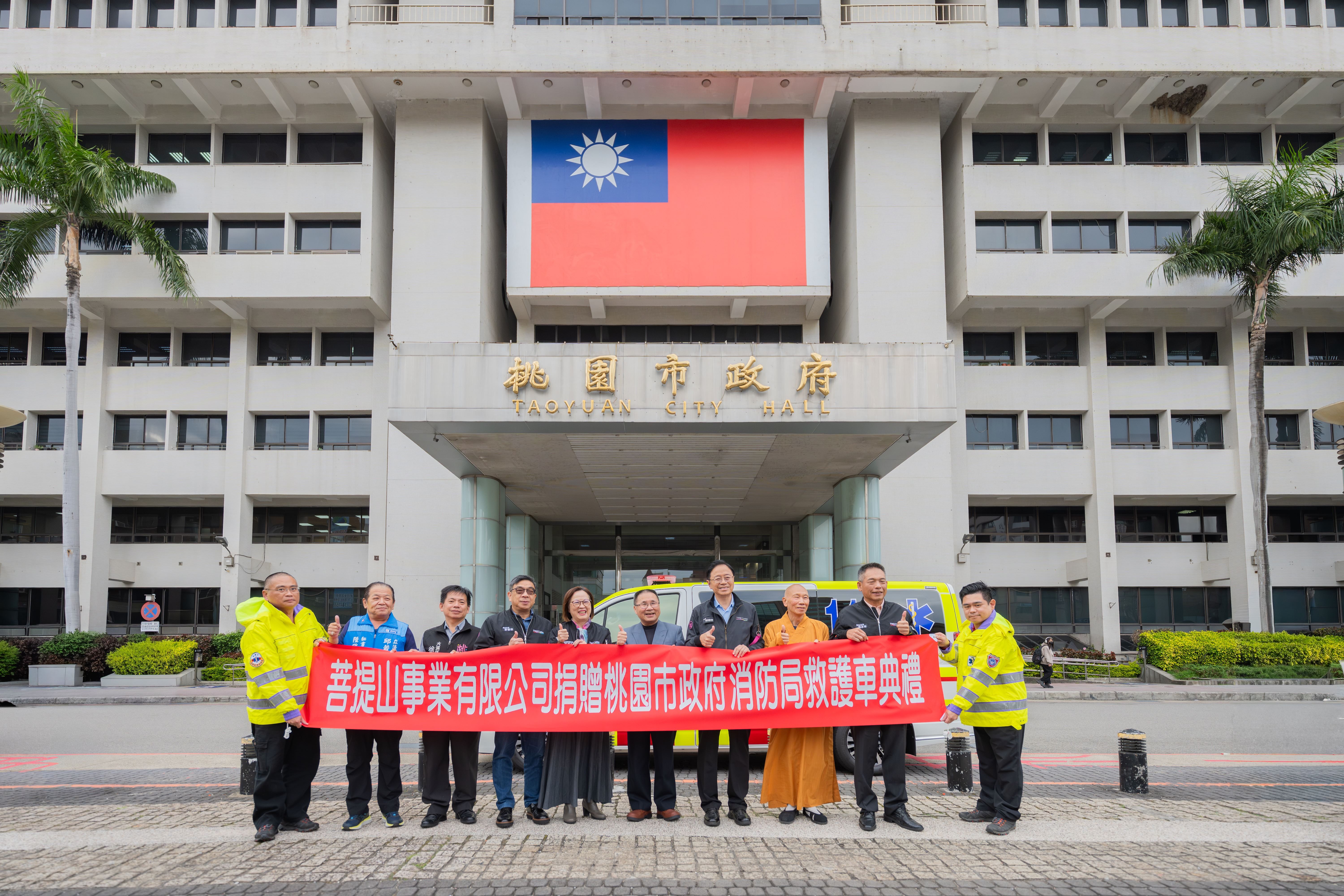 佛心企業!菩提山事業有限公司慷慨捐贈桃園市價值逾322萬元的救護車與130萬元善款。市長張善政親自感謝,新車將進駐大溪分隊,善款則用於扶助弱勢,全面提升桃園的緊急救護與社會救助能量。