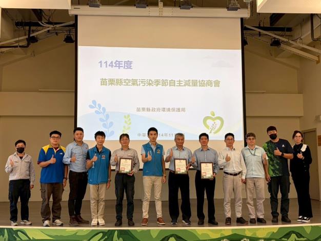 隨著時序進入空氣品質容易惡化的秋冬季節,苗栗縣政府為超前部署,已成功與縣內三大企業建立治理共識。苗栗縣環保局於11月6日,與中國石油化學、長春石油化學及華夏海灣塑膠等三家公司共同簽署「空污季自主減量協議」,透過企業善盡社會責任,配合調整製程,共同為改善苗栗的空氣品質努力。