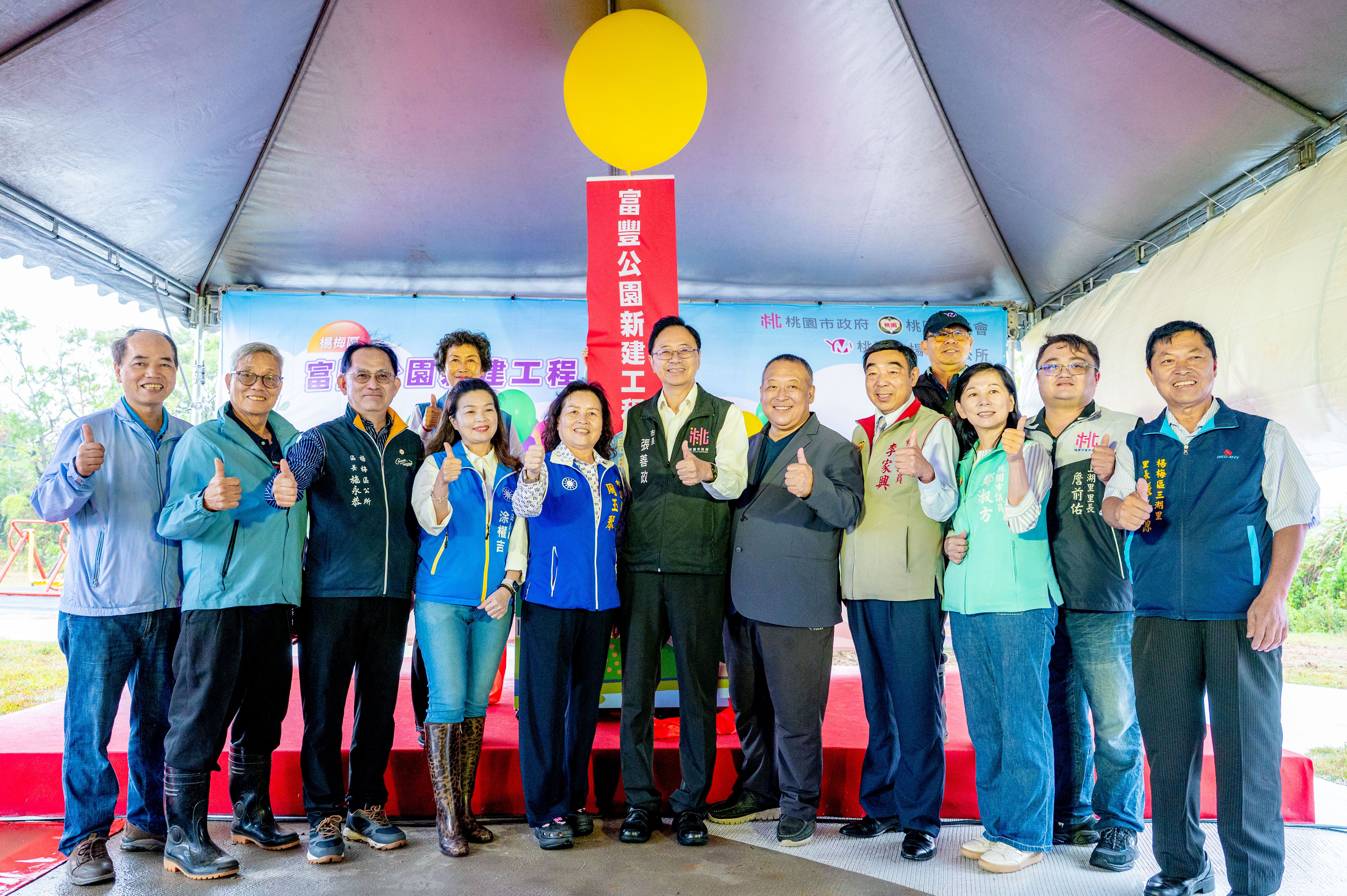 張善政市長指出,市府團隊持續將低度利用的土地轉化為市民共享的公共空間,富豐公園的落成,不僅大幅改善了當地的生活環境,也為楊梅地區增添一處優質的「城市綠肺」。楊梅區公所也表示,未來將持續與市府合作,讓更多閒置空間重獲新生,展現桃園不斷進步的城市活力。今日啟用典禮,包括市議員周玉琴、李家興、鄭淑方,以及市府民政局長劉思遠、楊梅區長施永恭等多位貴賓也一同出席,見證楊梅地區的煥然一新。