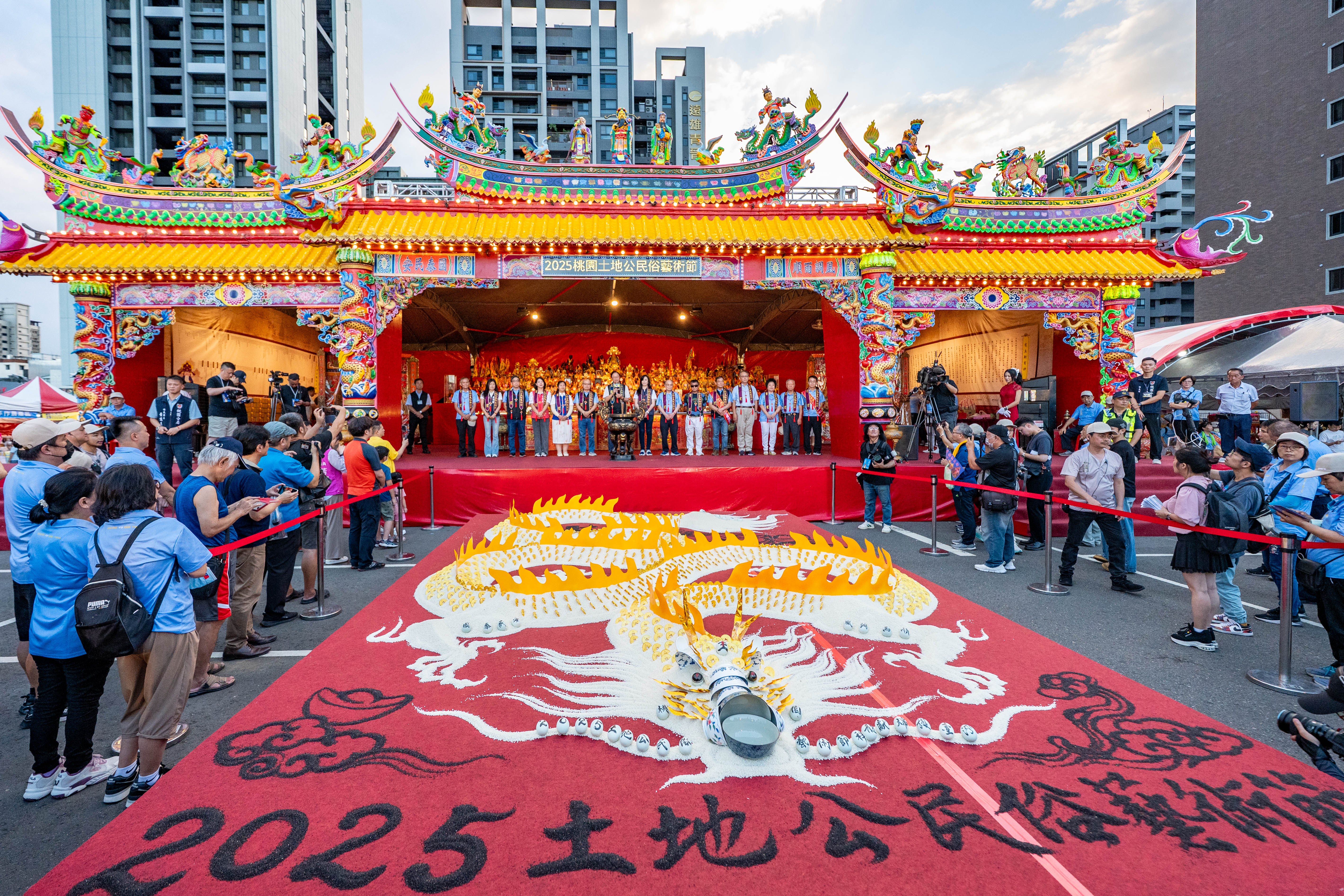 全台最具規模的宗教盛事「2025桃園土地公民俗藝術節」於今(27)日盛大登場!桃園市長張善政下午親赴桃園區主會場,主持主獻大典,並為重達450公斤的「米龍」進行點睛儀式,為為期兩日的活動揭開序幕。今年活動邁入第18屆,規模再創新高,吸引了海內外共266尊土地公神尊齊聚,場面莊嚴盛大。