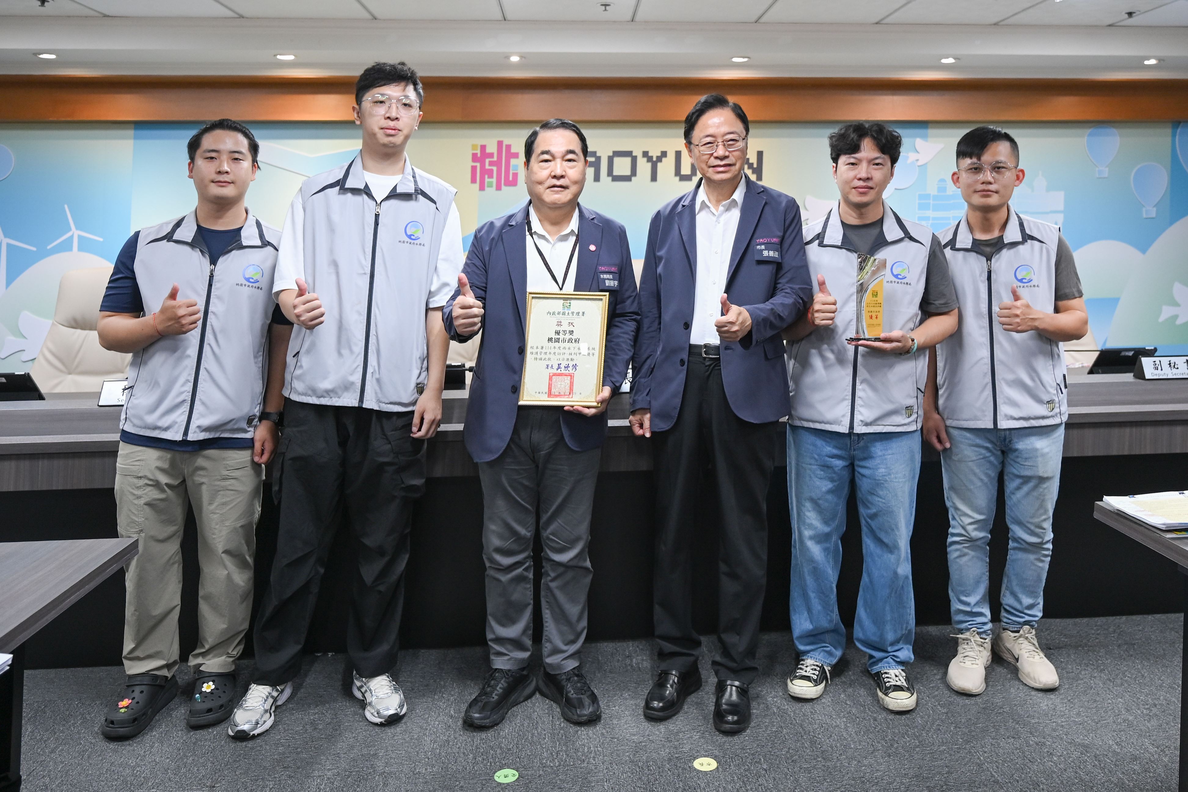 水務局此次獲獎的項目分別為「113年度公共污水處理廠再生水建設評鑑」及「114年度雨水下水道維護管理訪評」,在這兩項評鑑中與臺北市、新北市並列全國第一。水務局長劉振宇表示,這份榮耀歸功於張善政市長的大力支持、王明鉅副市長的悉心指導,以及全體同仁的共同努力,展現了桃園在水資源管理與智慧防災領域的領先實力。