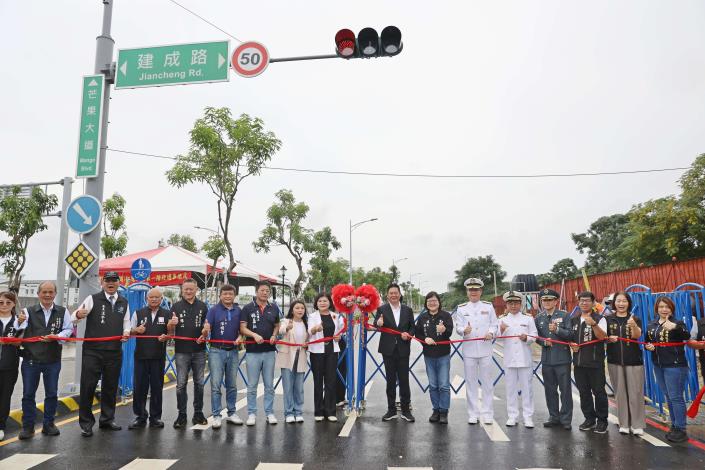 「芒果大道」拓寬工程總經費高達4.35億元,路線北起建成路,向南連結縣道158線(文科路)至光復路,全長約1.5公里。縣府交通工務局長汪令堯簡報指出,目前工程進度已超前達90%,本次通車是為配合約1200名國軍進駐需求並回應民眾期待。全路段規劃為30米寬,不僅保留了沿線的芒果樹,創造在地記憶,更納入人行道與自行車道,打造以人為本的景觀休閒道路,未來路口更規劃設置轉運站,完善公共運輸機能。
