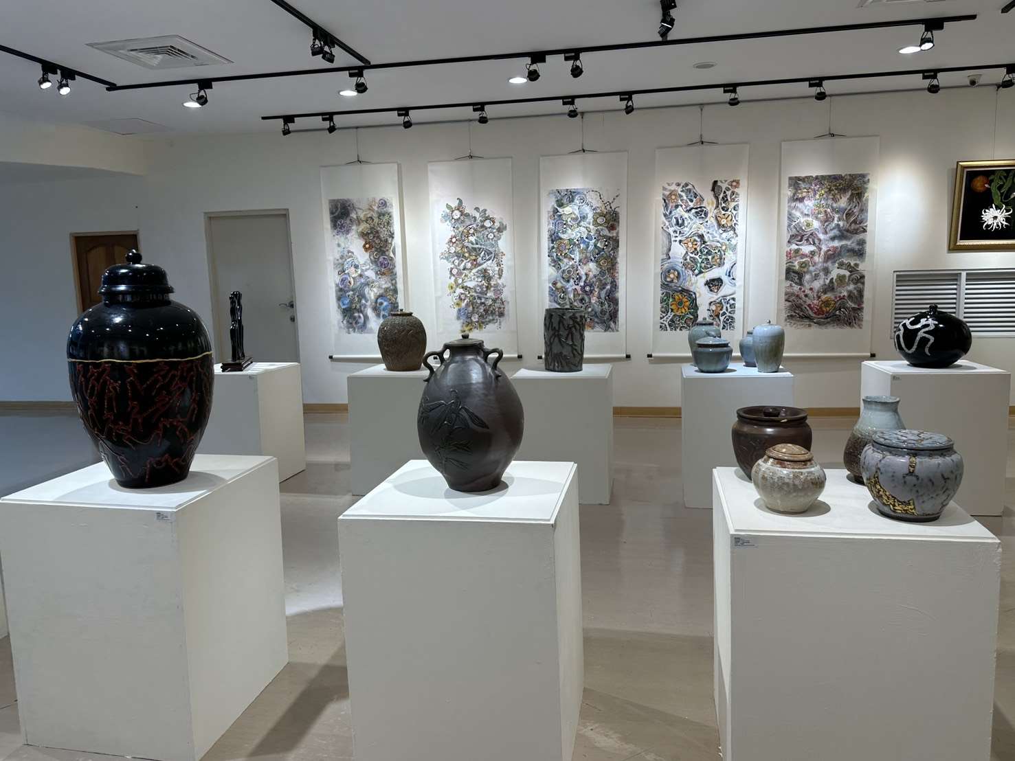 雲林縣長張麗善說明,展覽名稱「塑繪四端」別具巧思,不僅代表著丁振生與廖淑媛、黃玉滿與李季儒這兩對藝術家夫妻的創作對話,更呼應了孟子「惻隱、羞惡、辭讓、是非」的四端之心,巧妙地將藝術創作與人文精神連結。在這次的展覽中,觀眾可以看到丁振生老師捕捉生命厚度的人物雕塑;廖淑媛老師描繪自然花卉的細膩油畫;黃玉滿老師透過纏繞畫線條展現的靜謐美感;以及李季儒老師結合古文字與材質美學的漆陶缸甕創作。